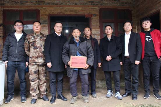 2019年1月19日下午,貴州陟翔保安總公司總經(jīng)理馮波、副總經(jīng)理陳春生攜同下屬保安公司總經(jīng)理邱元波、銅仁一鼎爆破公司副總經(jīng)理段麗莎、科技公司副總經(jīng)理馮偉等同志頂著刺骨的寒風(fēng),前往貴州省凱里市黃平縣舊州鎮(zhèn)楊花沖對當(dāng)?shù)匾回毨窬彝ミM(jìn)行幫扶慰問。
