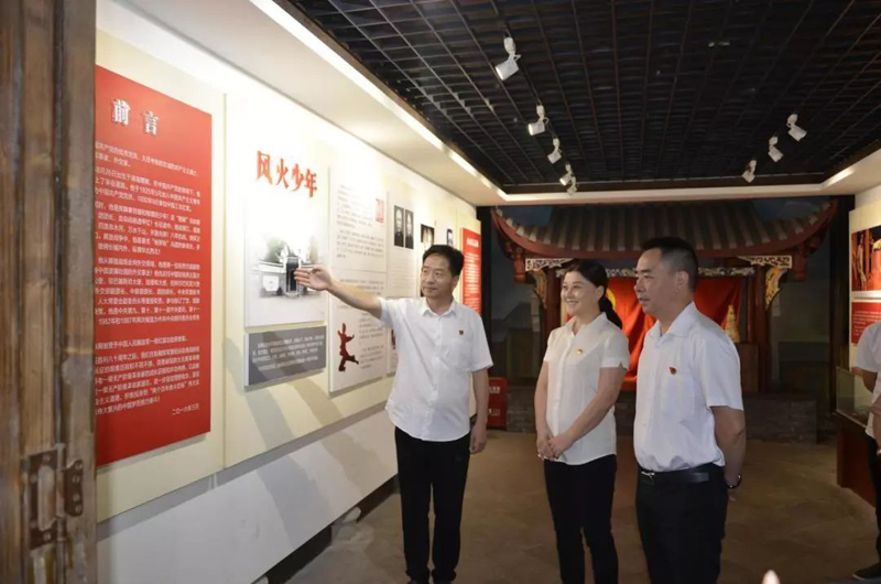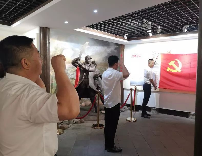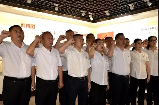 在陳列館內,陳春生書記帶領全體黨員、入黨積極分子面對黨旗重溫了入黨誓詞,鏗鏘的誓言響徹在紀念館內,使每位黨員再一次接受了心靈的洗禮,堅定了初心,牢記了使命。