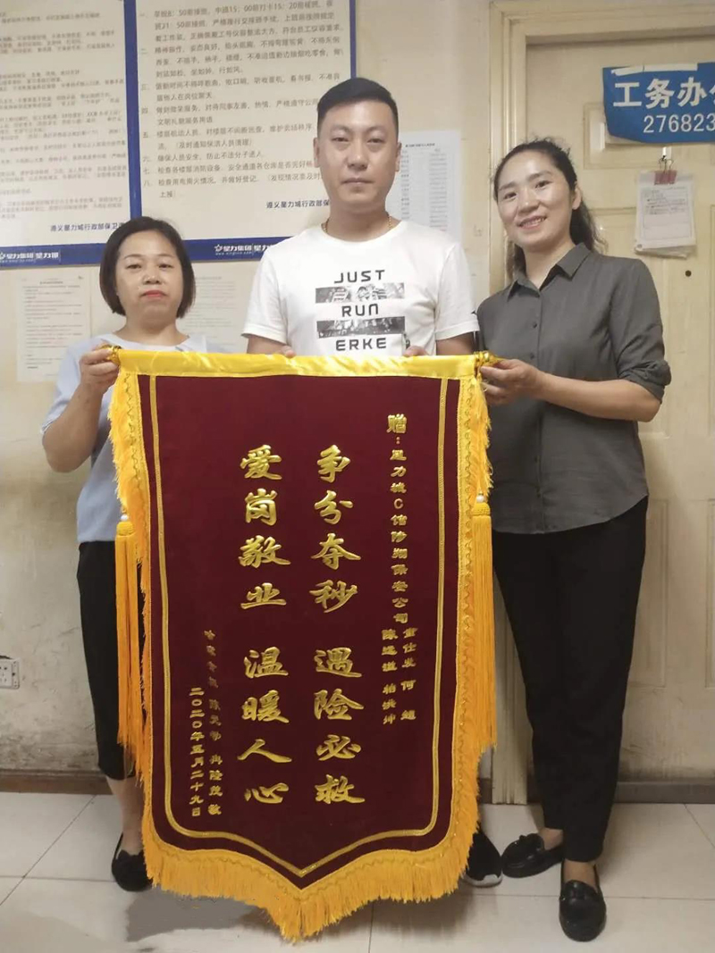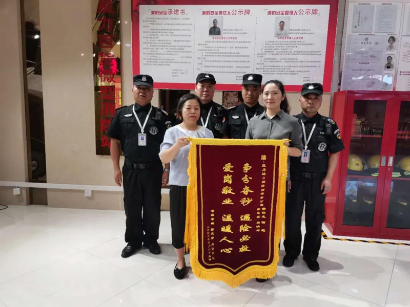經半個多月的治療,患者于2020年7月7日康復出院。出院后,患者在家屬的陪同下,將一面印有“爭分奪秒、遇險必救、愛崗敬業(yè)、溫暖人心”的錦旗送至我公司駐點星力城保安隊員手中,并再三表示感謝。隊員們紛紛表示:“這是我們的份內之事,我們的職責就是為業(yè)主和客人的安全保駕護航”。
