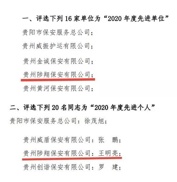 【喜報(bào)】 公司及個(gè)人榮獲2020年度貴陽(yáng)市保安協(xié)會(huì)“先進(jìn)單位”和“先進(jìn)個(gè)人”稱號(hào)