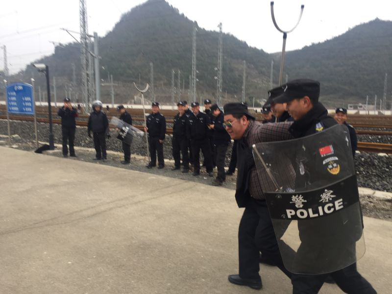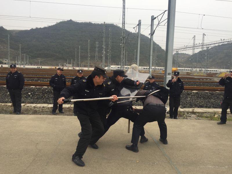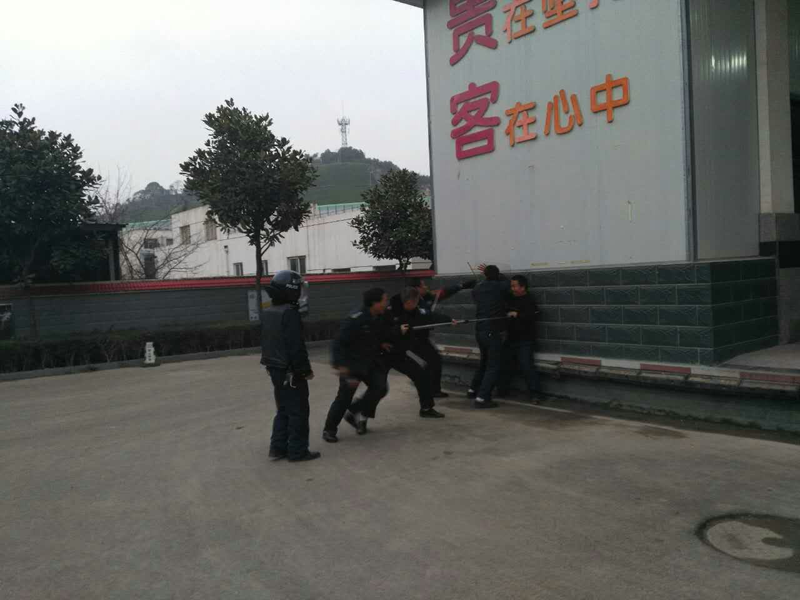 三、按照客戶單位《反恐怖主義法》宣傳教育活動(dòng)周安排,于2016年12月21日14:00-16:00,由駐車輛段動(dòng)車所保安隊(duì)開展反恐處突實(shí)作演練,共計(jì)26名駐車輛段動(dòng)車所保安隊(duì)隊(duì)員參加演練,于2016年12月22日9:00-10:00,由駐車輛段、客運(yùn)段保安隊(duì)開展反恐處突實(shí)作演練,共計(jì)12名駐車輛段、客運(yùn)段保安隊(duì)隊(duì)員參加演練。本次演練以反恐怖主義法教育、反恐器材使用、反恐團(tuán)隊(duì)配合和應(yīng)對(duì)刀斧砍殺實(shí)作演練為主,有效提高了職工反恐應(yīng)急處置能力。