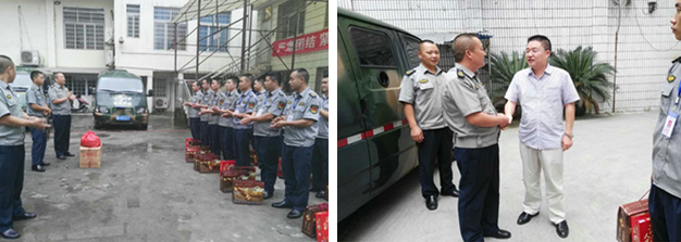 9月21日至24日,黔東南州分公司總經(jīng)理夏誠豇帶隊對所屬16個守押中隊進行節(jié)日慰問和安全檢查,期間還向農行等客戶單位領導表達謝意并帶去祝福。