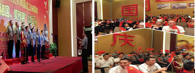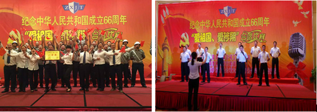 在圓滿完成“9.3”中國人民抗日戰(zhàn)爭暨世界反法西斯戰(zhàn)爭勝利70周年紀念活動期間各項工作之后,總公司上下繼而開展“9月質量月”、中秋國慶“雙節(jié)”檢查慰問、“紅歌”合唱比賽等“三個活動”,提高企業(yè)服務質量,凝聚員工士氣,宏揚鎮(zhèn)東正能量、愛國熱忱和社會責任感,以實際行動向建國66周年獻禮!
