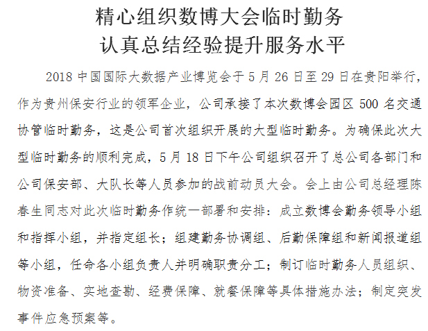精心組織數博大會臨時勤務 認真總結經驗提升服務水平