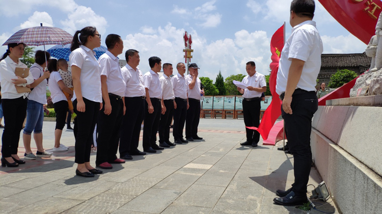 在位于甕安縣的猴場(chǎng)會(huì)議紀(jì)念館,全體黨員、預(yù)備黨員肅立在革命烈士雕像前,舉起右手,重溫了加入中國(guó)共產(chǎn)黨時(shí)的宣誓詞。短短幾十字的宣誓詞,無(wú)形之中在警醒、提示和規(guī)范每一位黨員同志的先鋒模范作用。